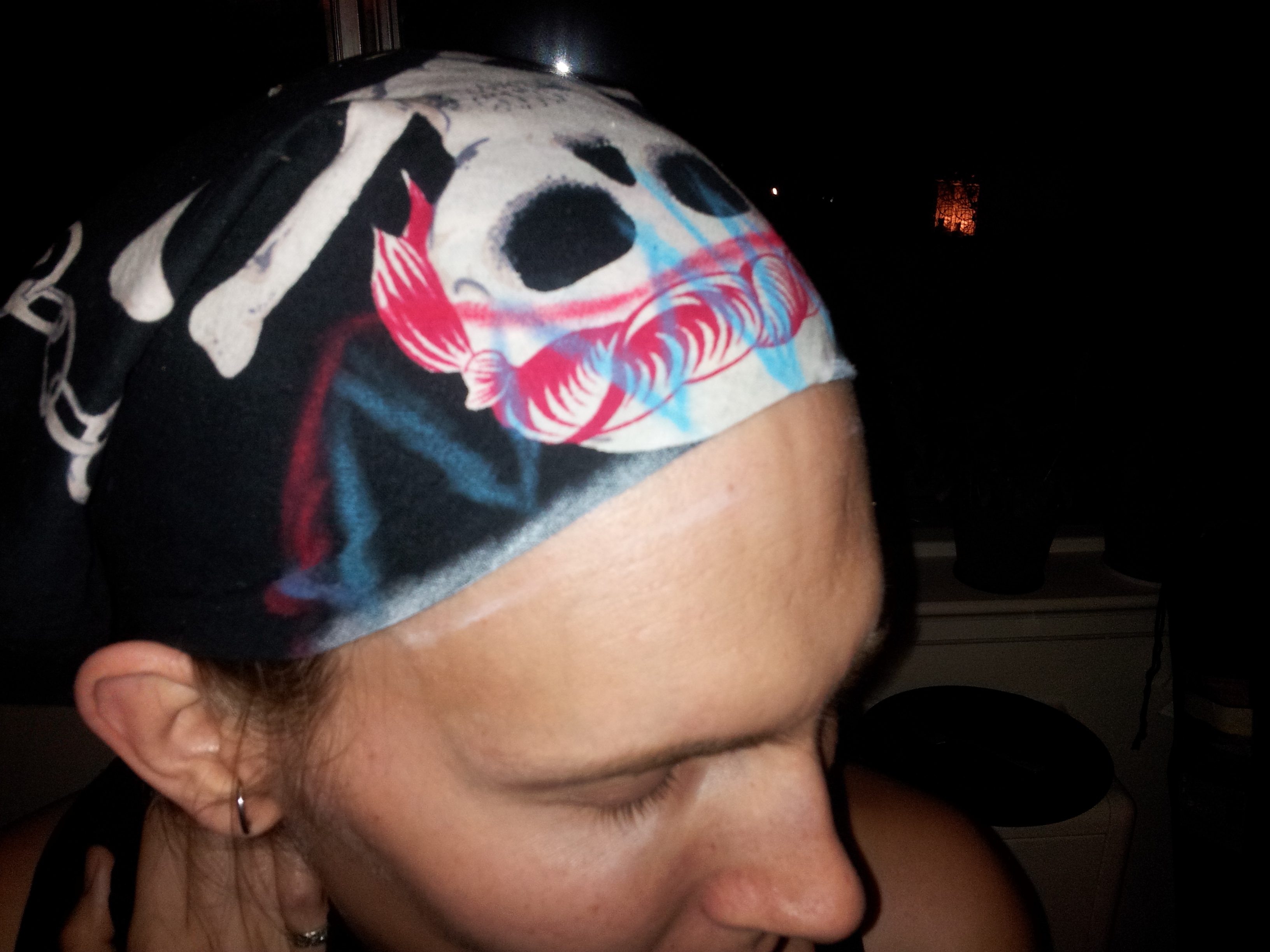 Alright! Let’s get down to business. First: Put the bandana on the head of the person you’re fitting for the hairpiece.