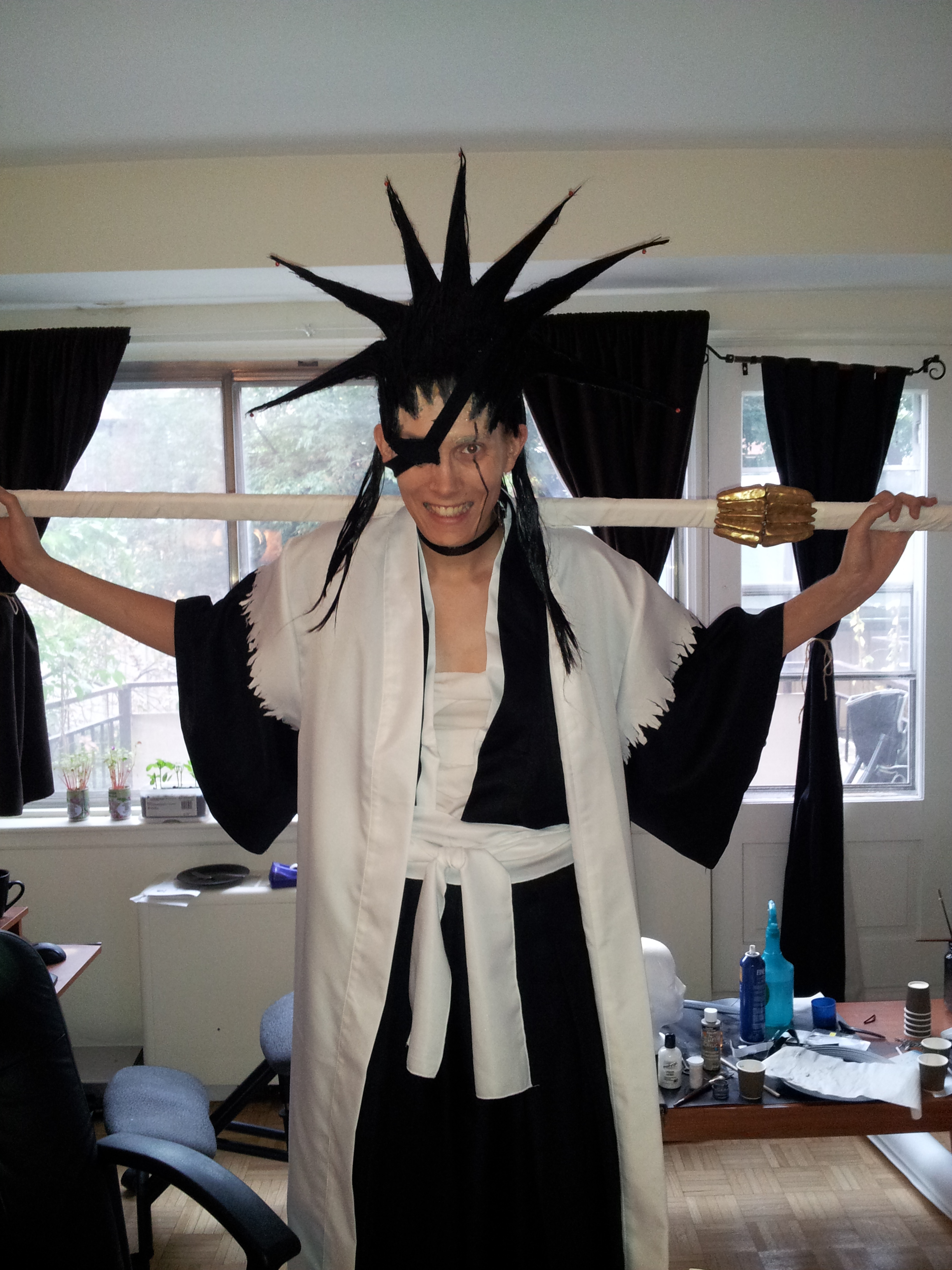 Position the eyepatch over the eye, secure the straps, perhaps touch up the hairline a little with some eyeliner and draw on Kenpachi’s scar aaaaand BAM! You’re done!
