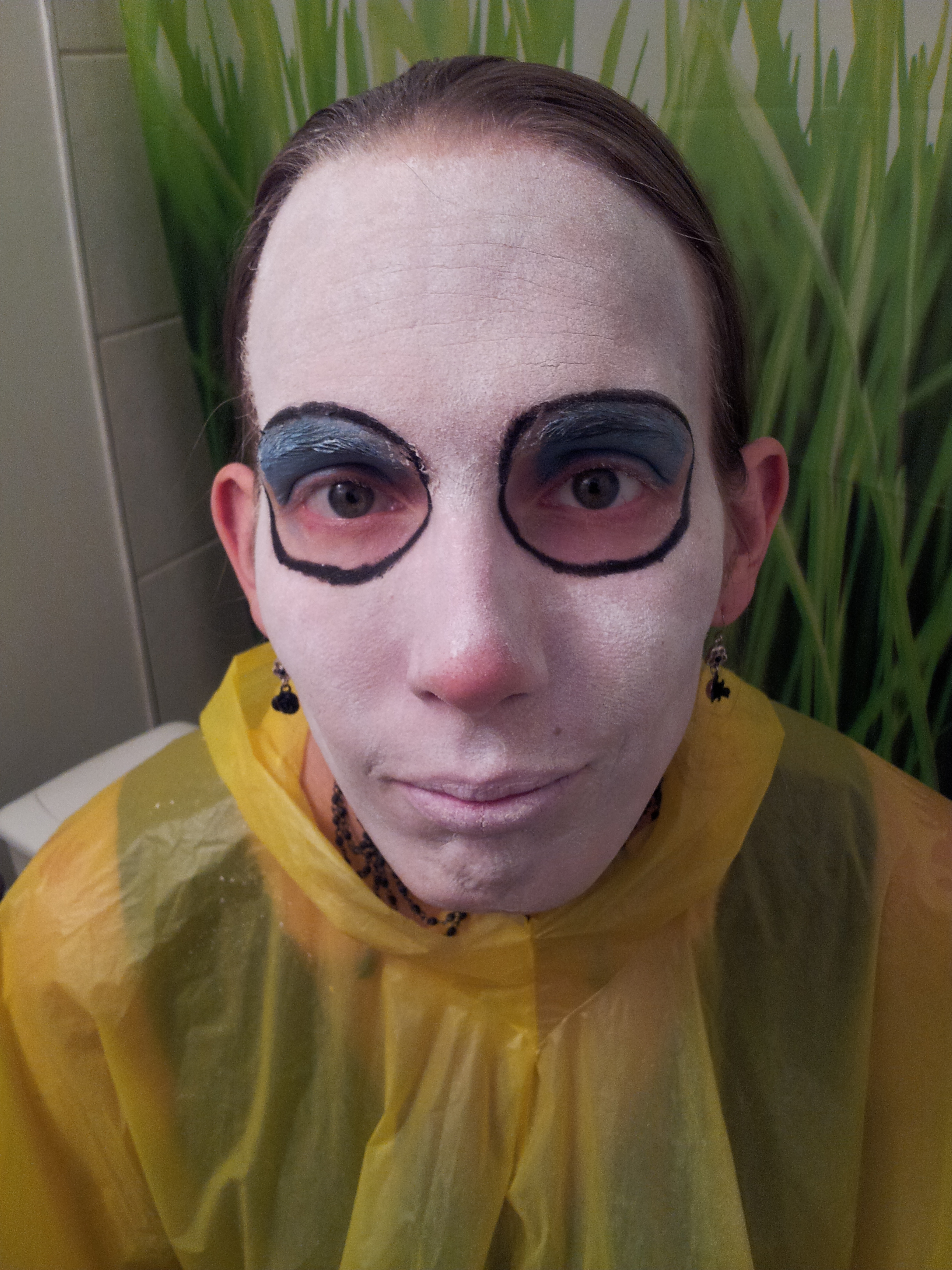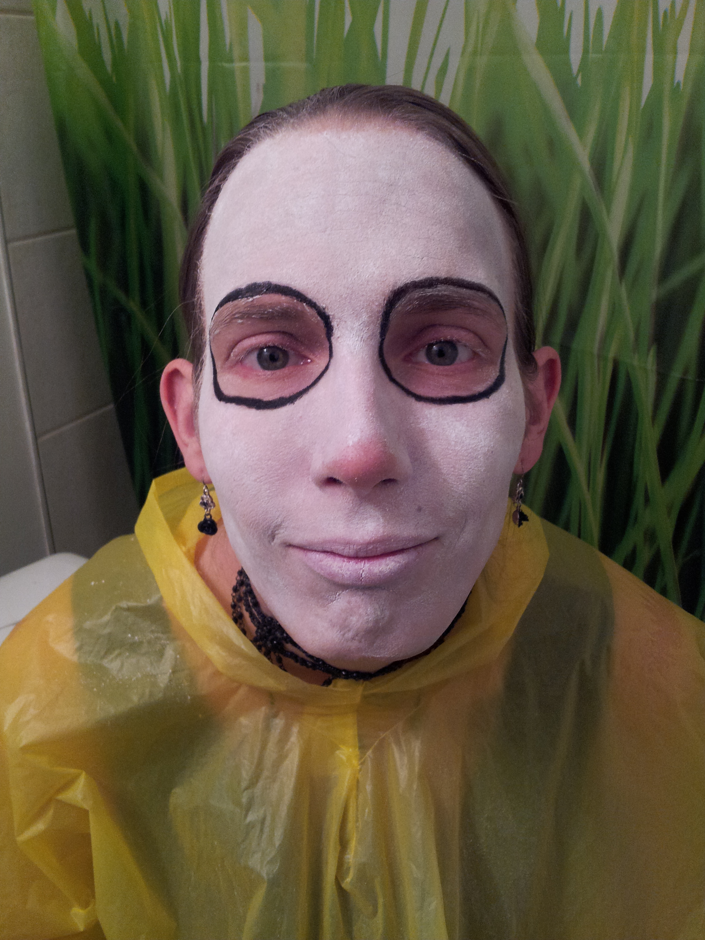 - White facepaint. (I used cream but you can use water based, greased, etc)