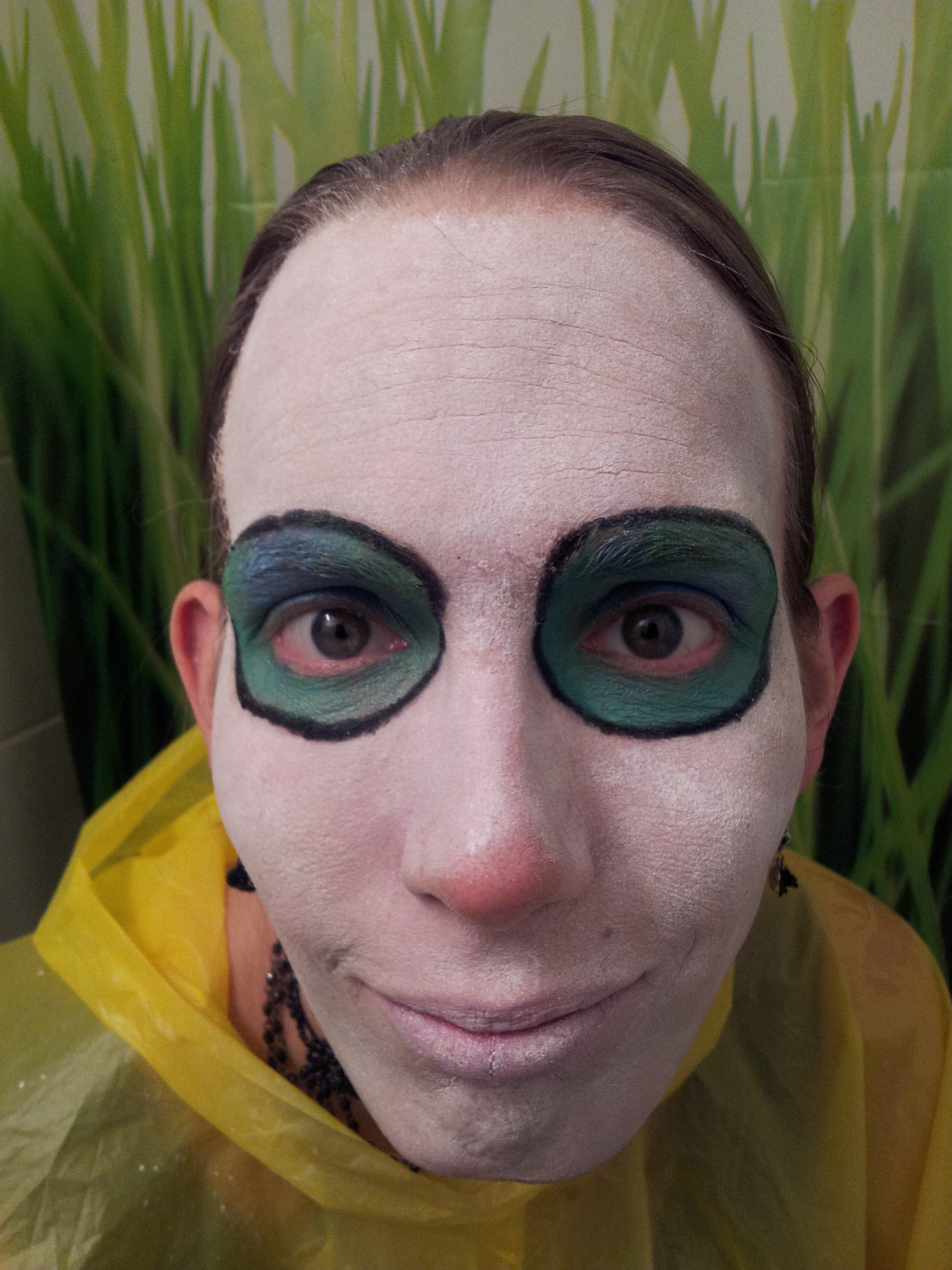 I forgot to mention deepening the shadows of the eyes with some black eyeshadow in the corners like so:
