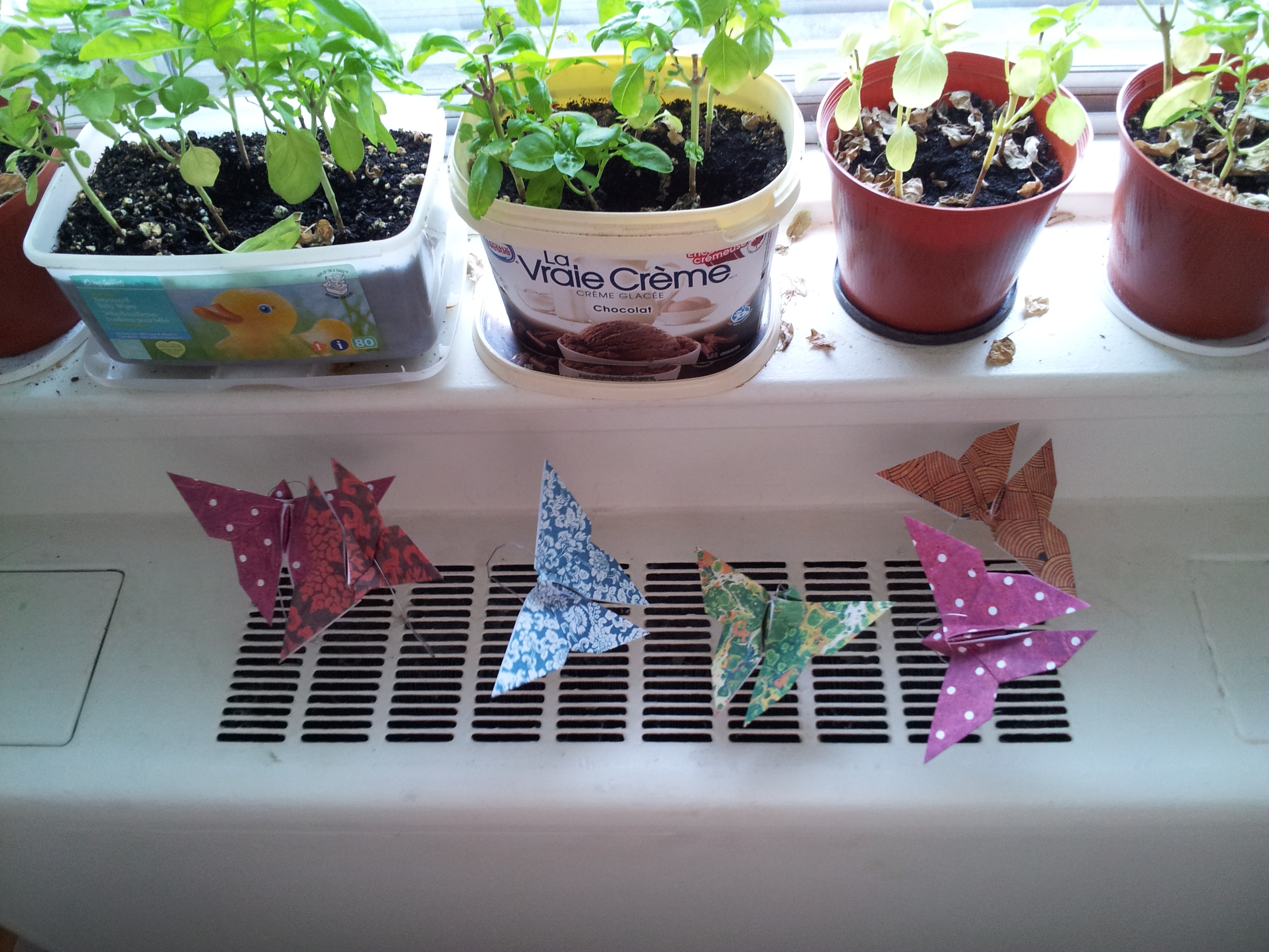 As winter drags on for the fifth month here in Montreal, it’s become just that: a drag. But after browsing Instructables I found a cute idea of putting paper butterflies over the radiator so that when the heat turns on, they flutter.