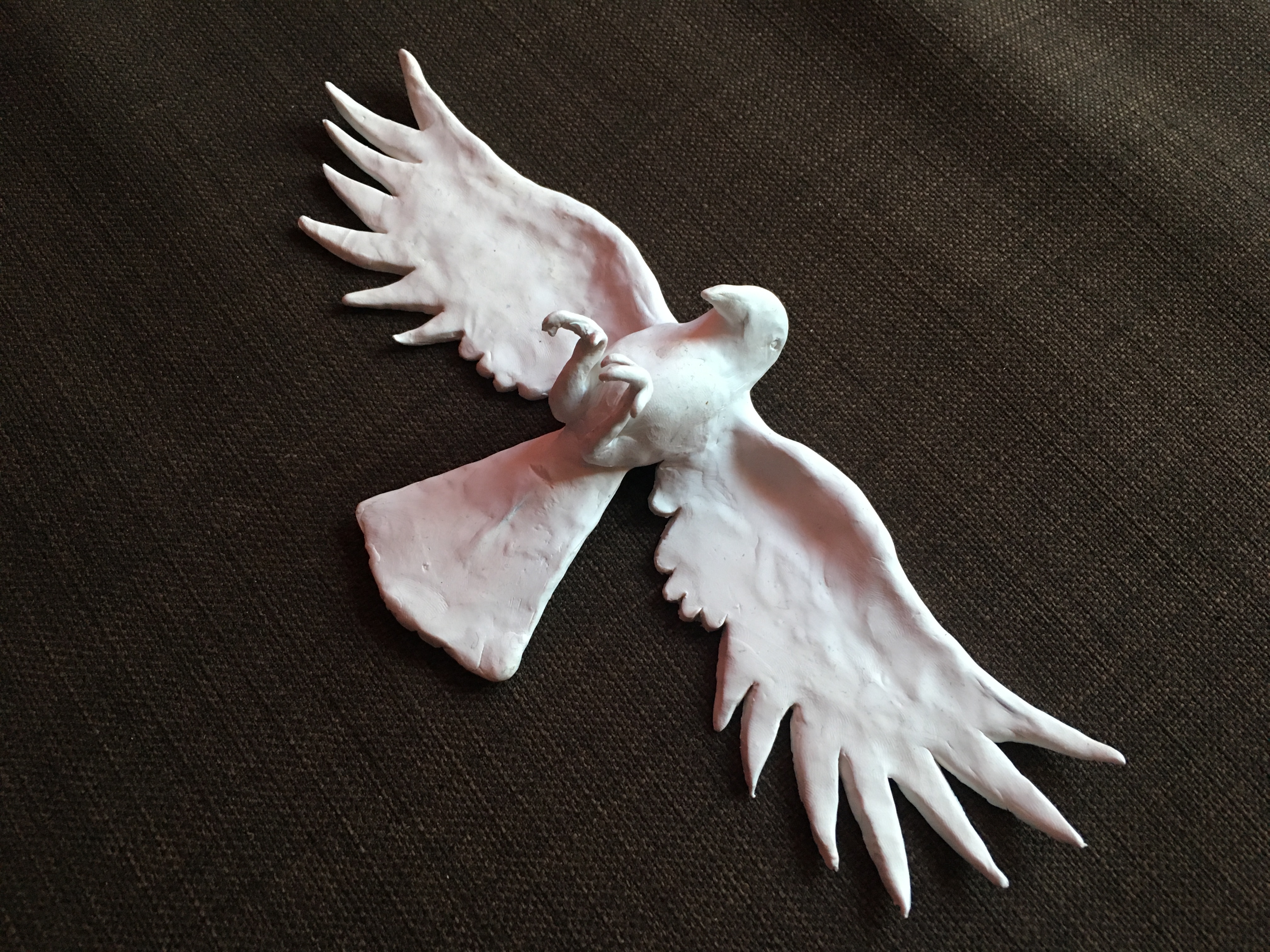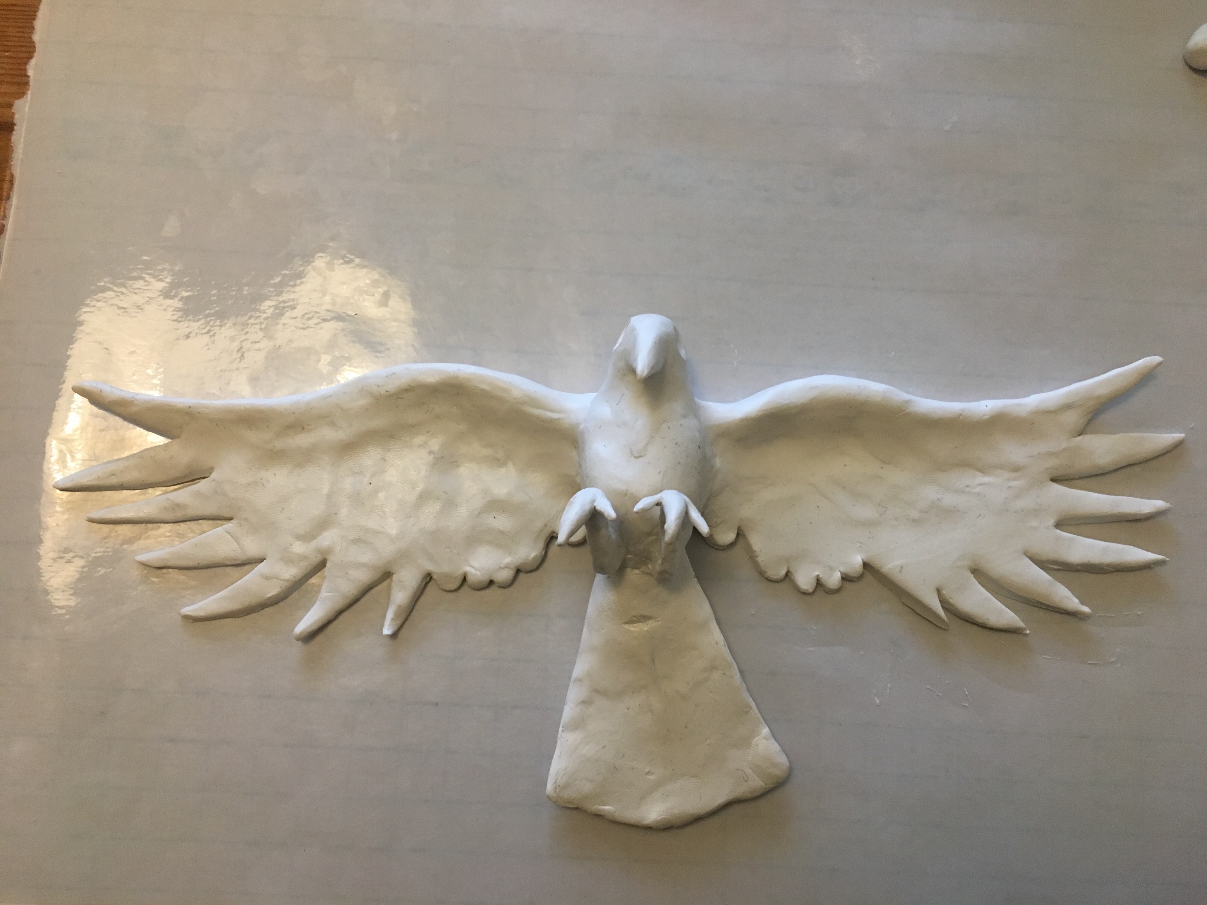 I’ve been reinforcing the raven statuette with DAS paperclay. You might remember me mentioning that most of the sculpture was made with Sculpy. I got to the point with it that it was too wiggly to safely work on the details without smushing the back of the wings or vice versa so I just decided to bake it and finish the detailing in an air dry clay.