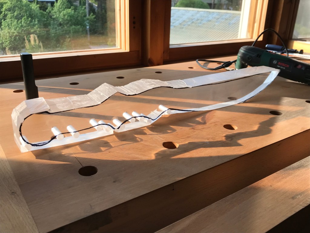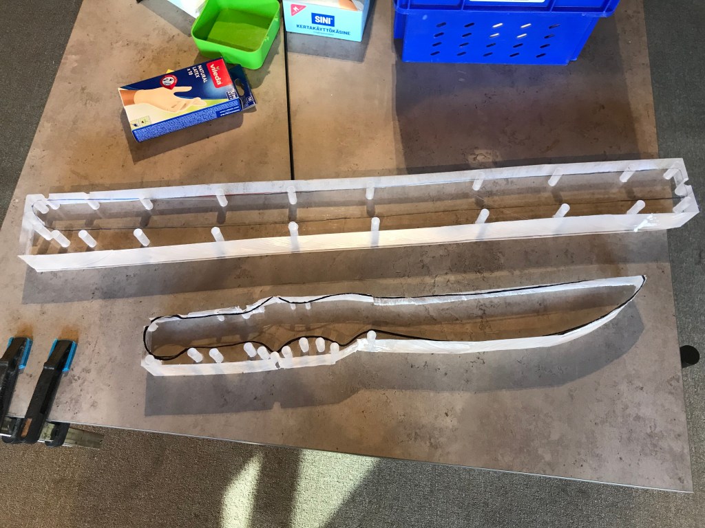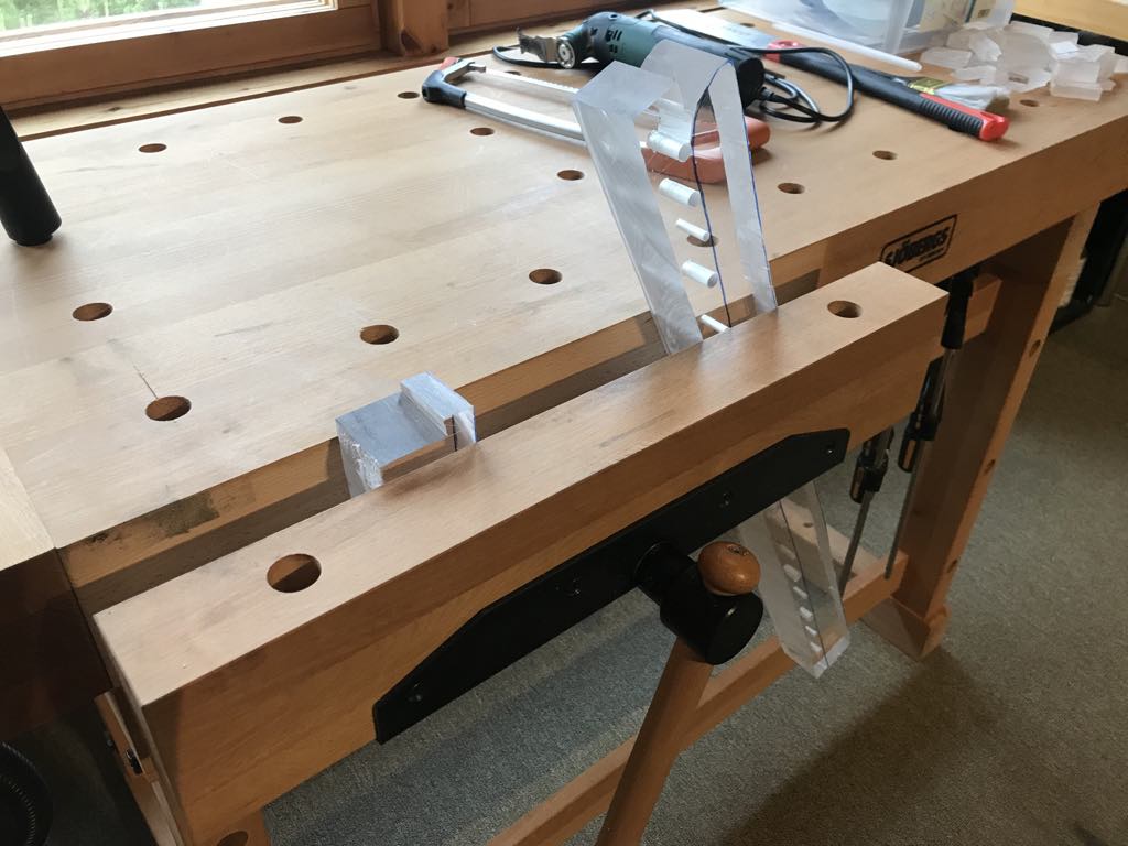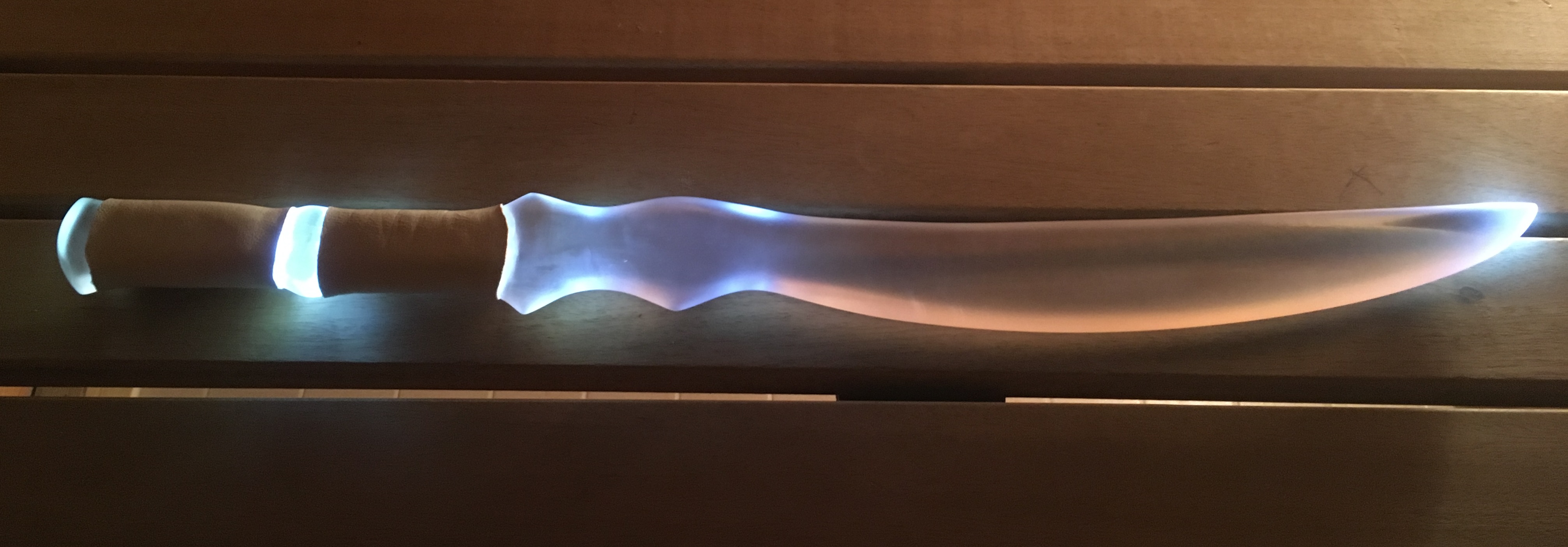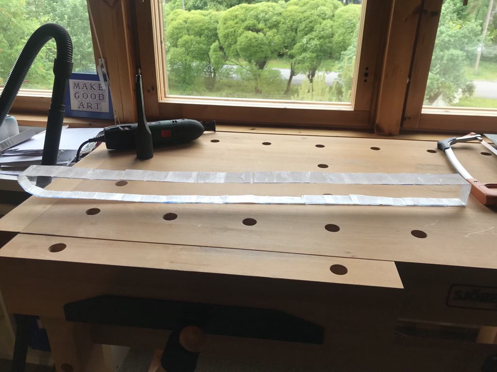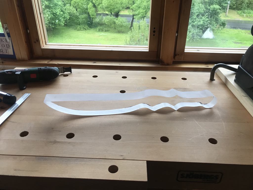The good news is that I got the seraph blade all sanded around the edges and I can at least get it measured and marked up for shaping. It’s really important that all those edges make a nice 90 degree angle with the sides (which we know for sure are flat). That lets me make sure I get the edge of the blade right in the middle and not curving off in one direction or the other.