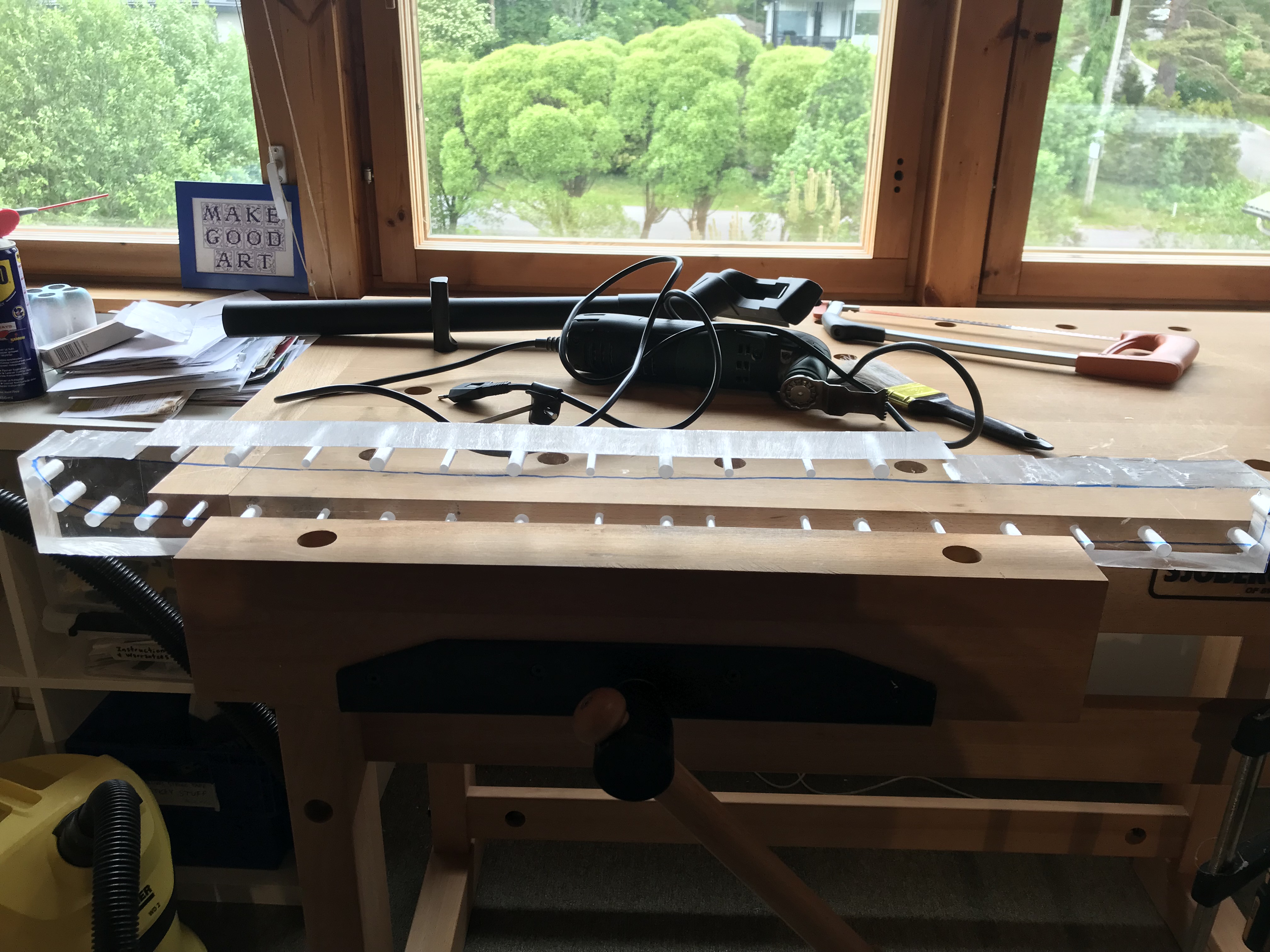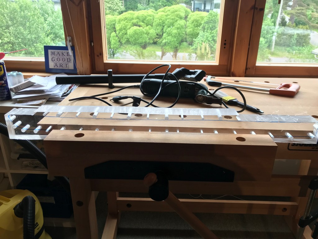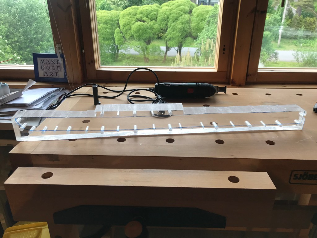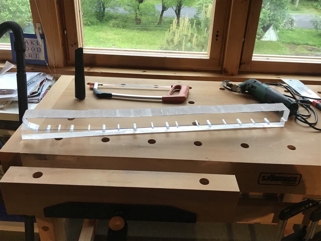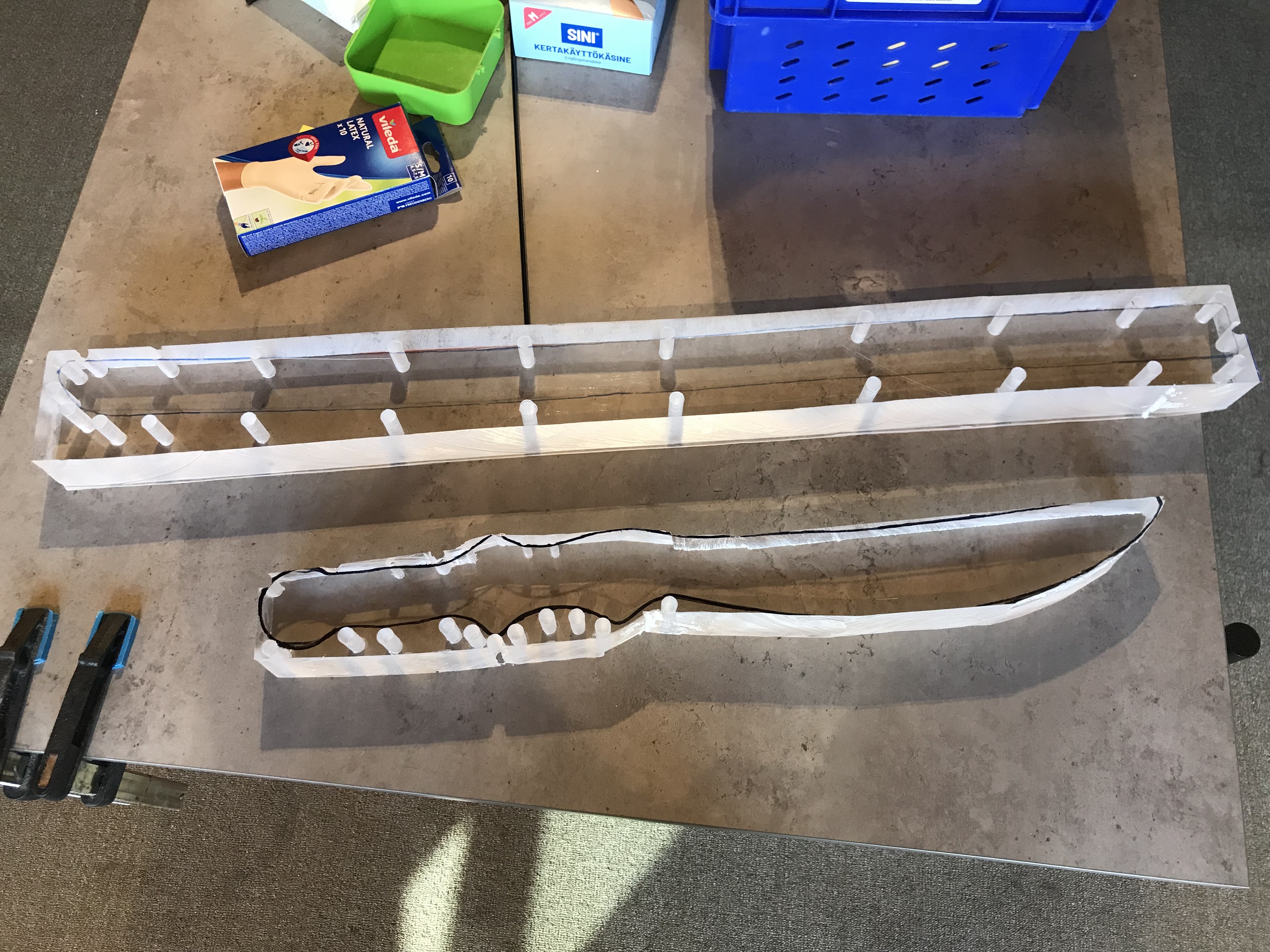 The good news is that I got the seraph blade all sanded around the edges and I can at least get it measured and marked up for shaping. It’s really important that all those edges make a nice 90 degree angle with the sides (which we know for sure are flat). That lets me make sure I get the edge of the blade right in the middle and not curving off in one direction or the other.